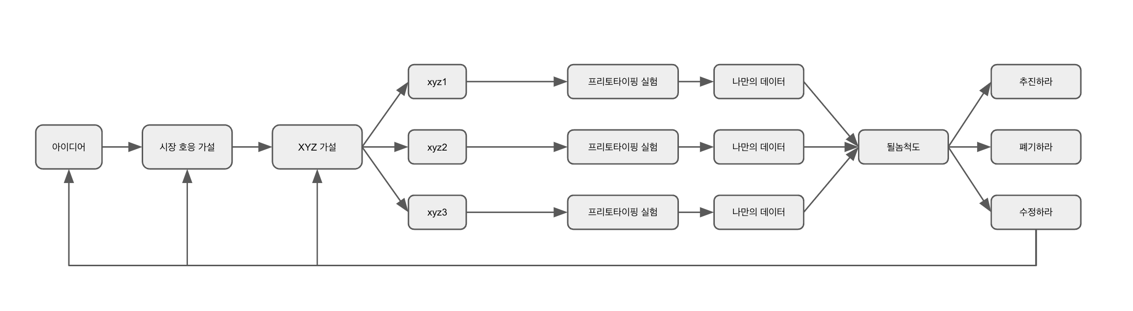 가설을 검증할 프리토타이핑 실험들을 찾아낸다.