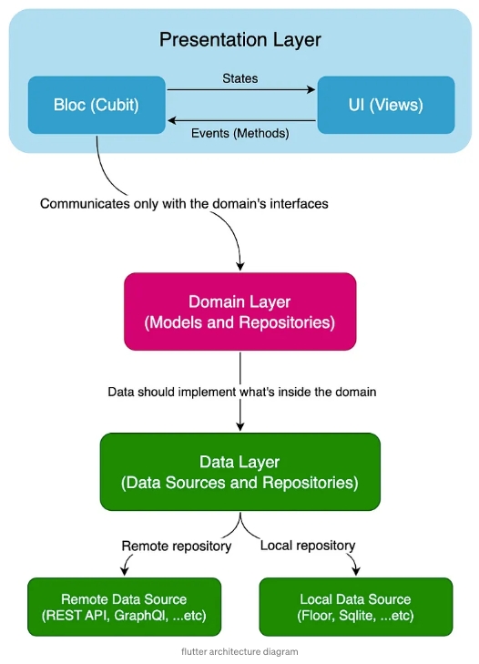 Flutter x Clean Architecture μ΄ ν¬μ€ν μ λμ¨ κ·Έλ¦ΌμΈλ° μμ¬μ΄ μ μ Layer μμ²΄λ§ μ€λͺ νμΌλ©΄ μ’κ² λλ° μΌλΆ κ°λ μ΄ Bloc μ μμ‘΄μ μ΄λ€.