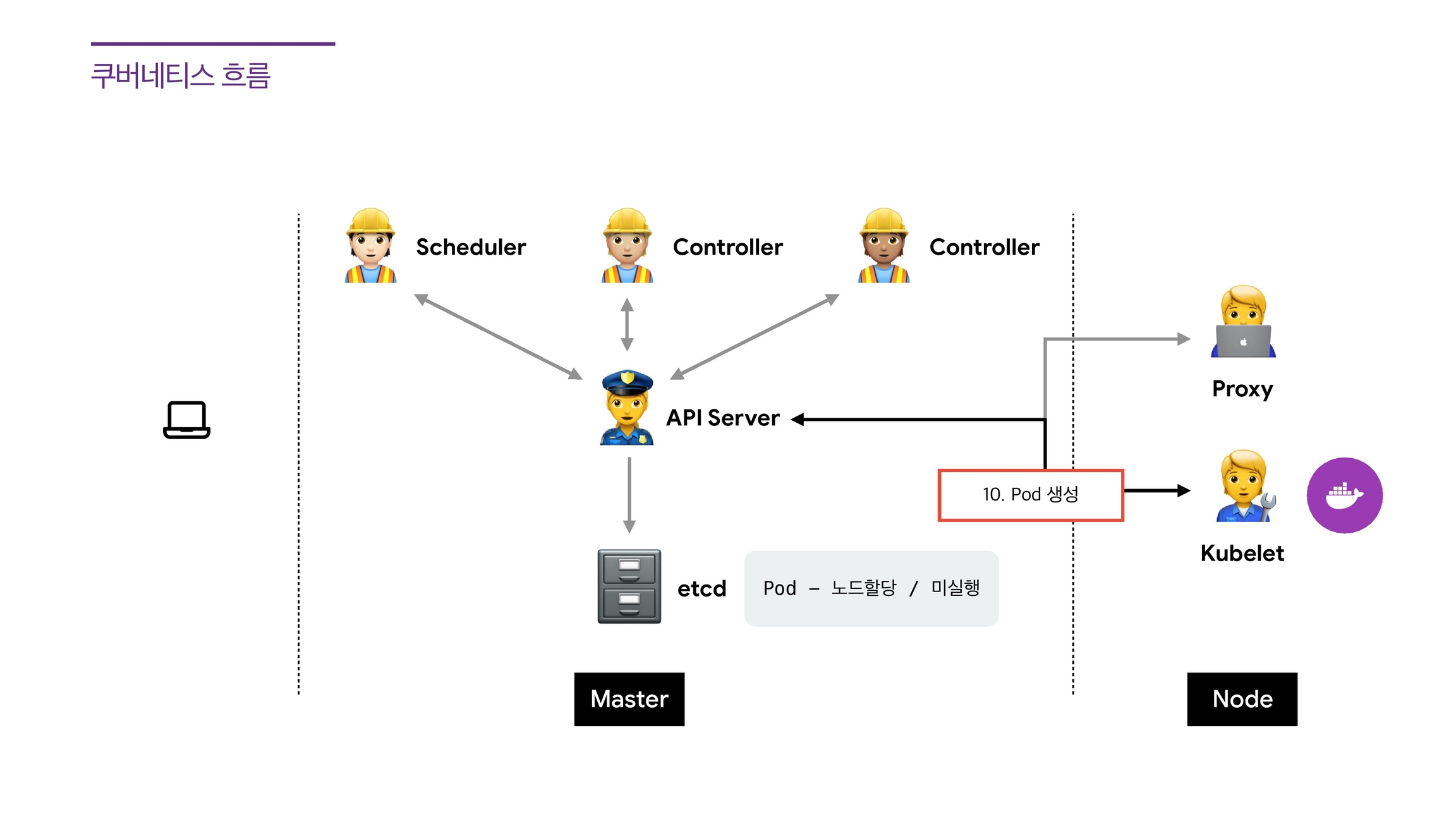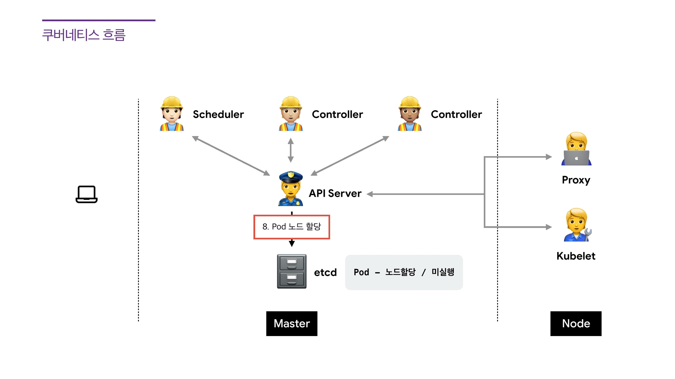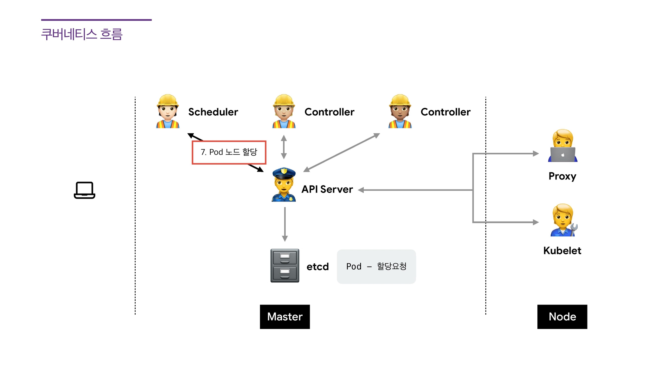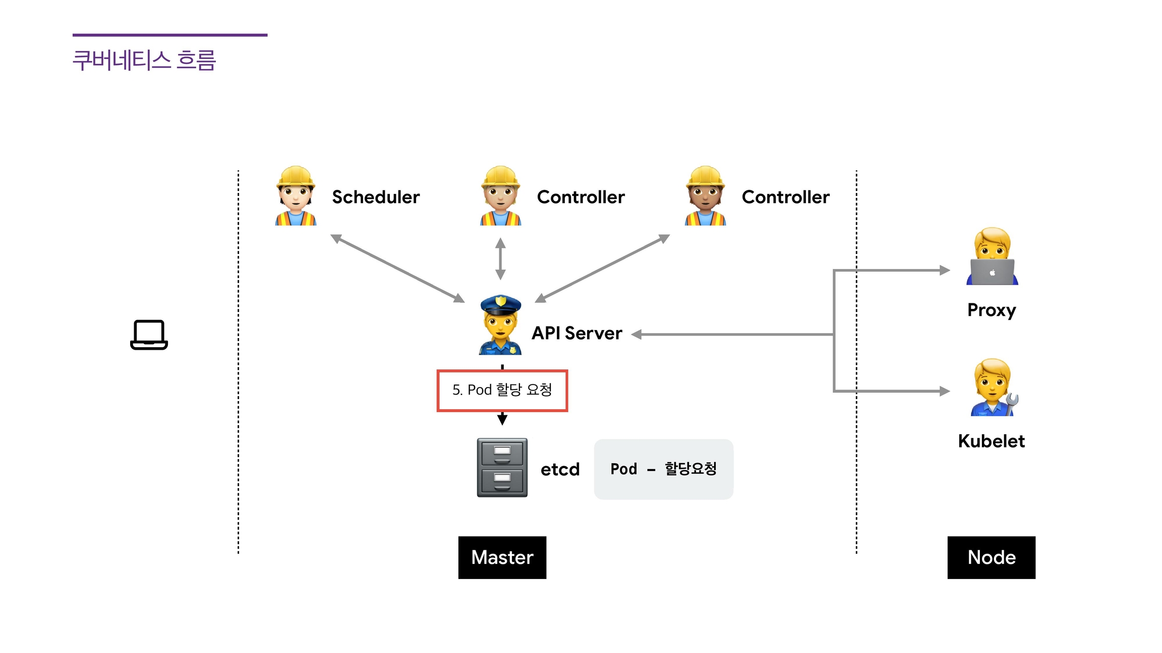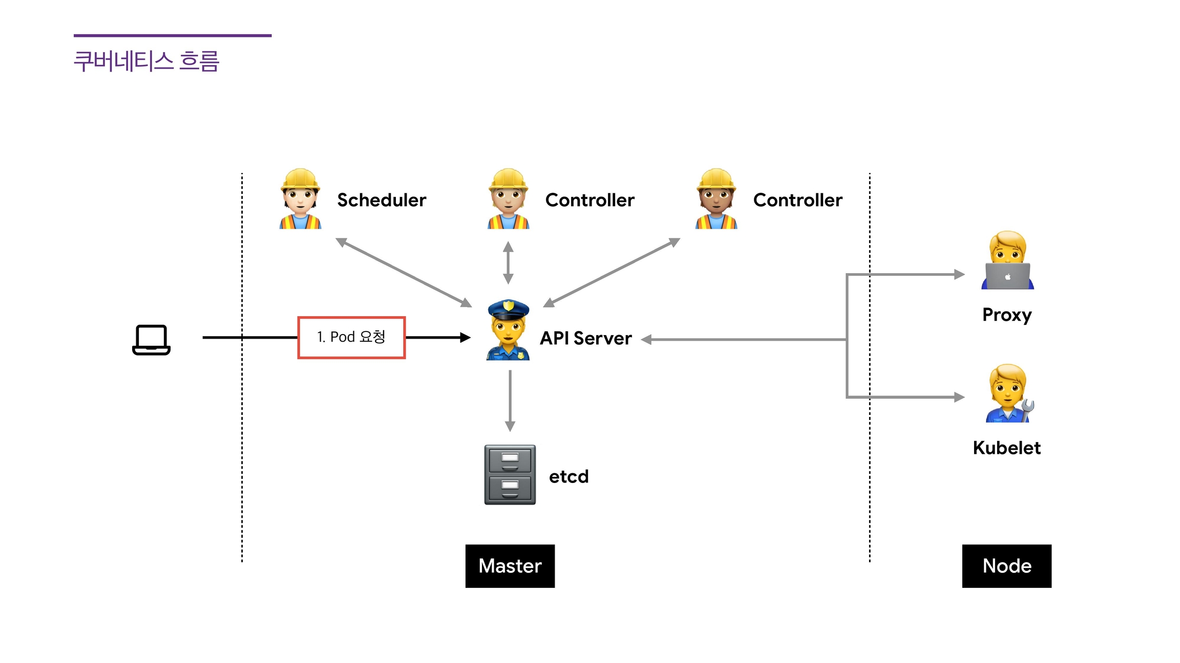 (예시) pod 생성 요청시 쿠버네티스 작동 흐름