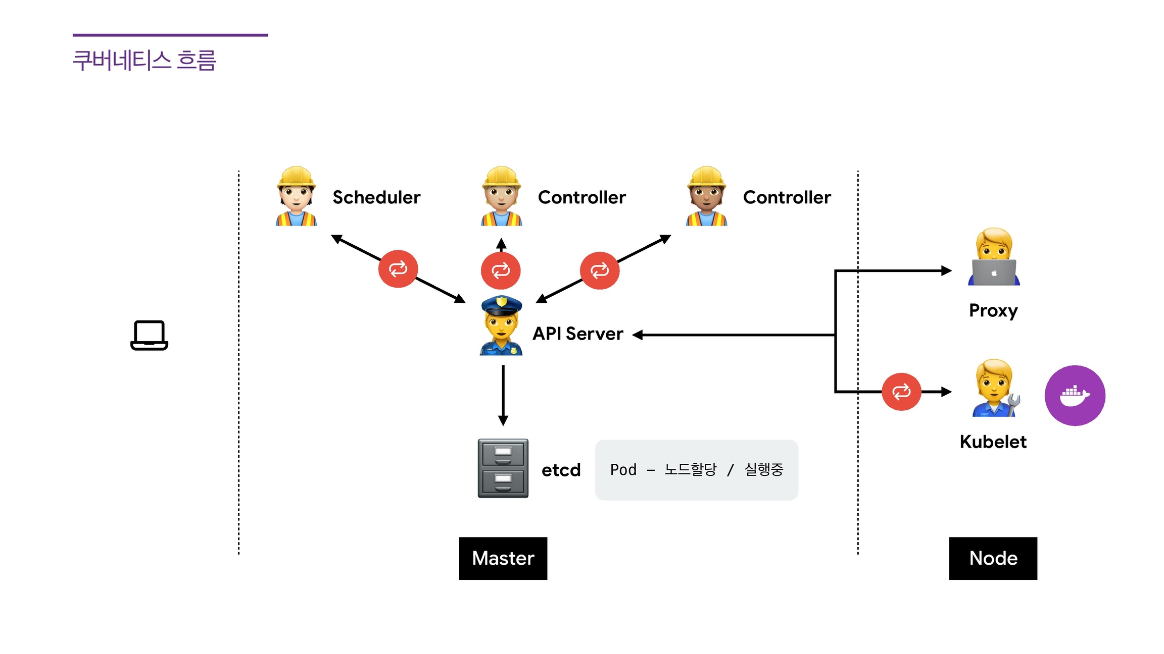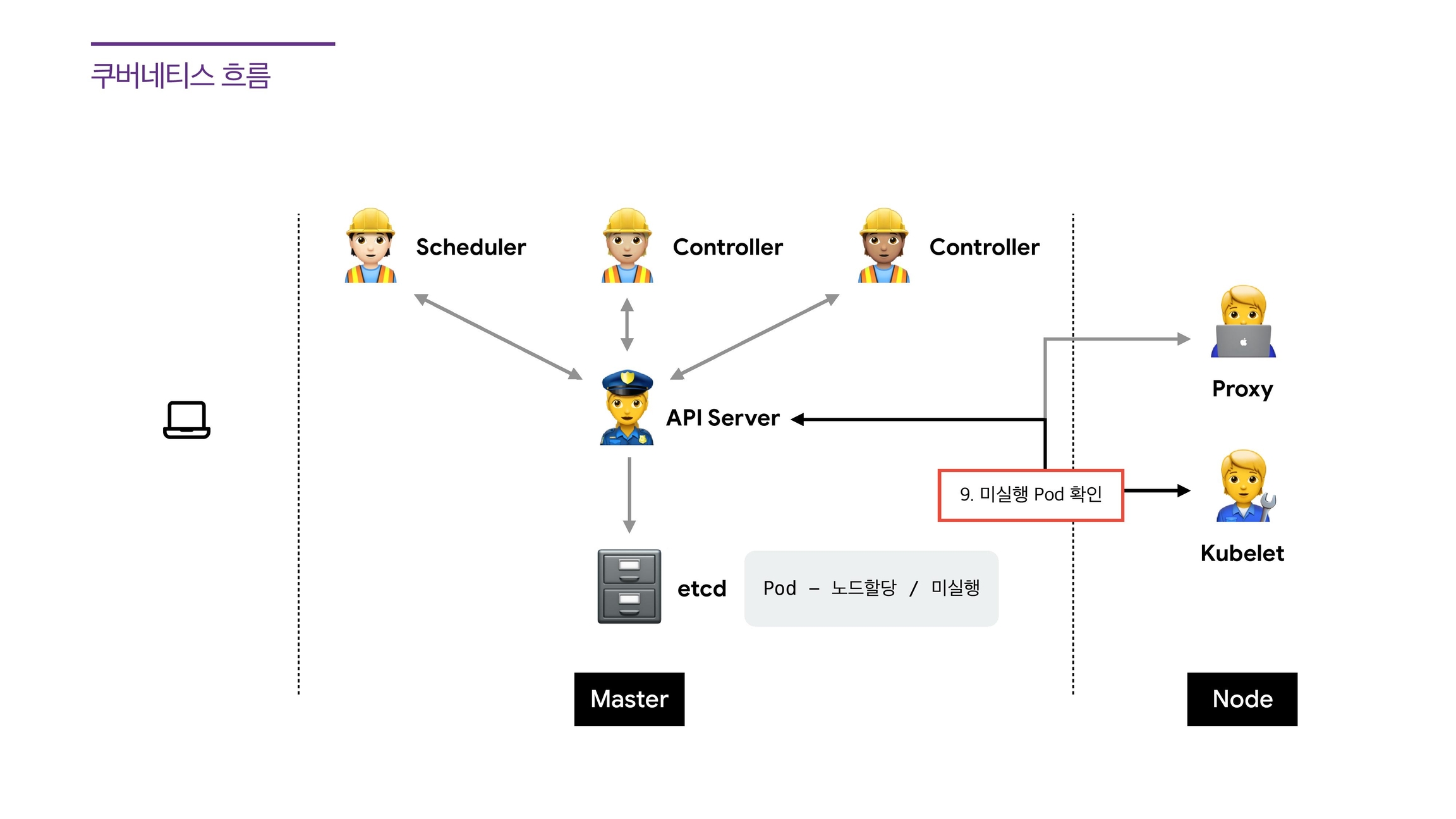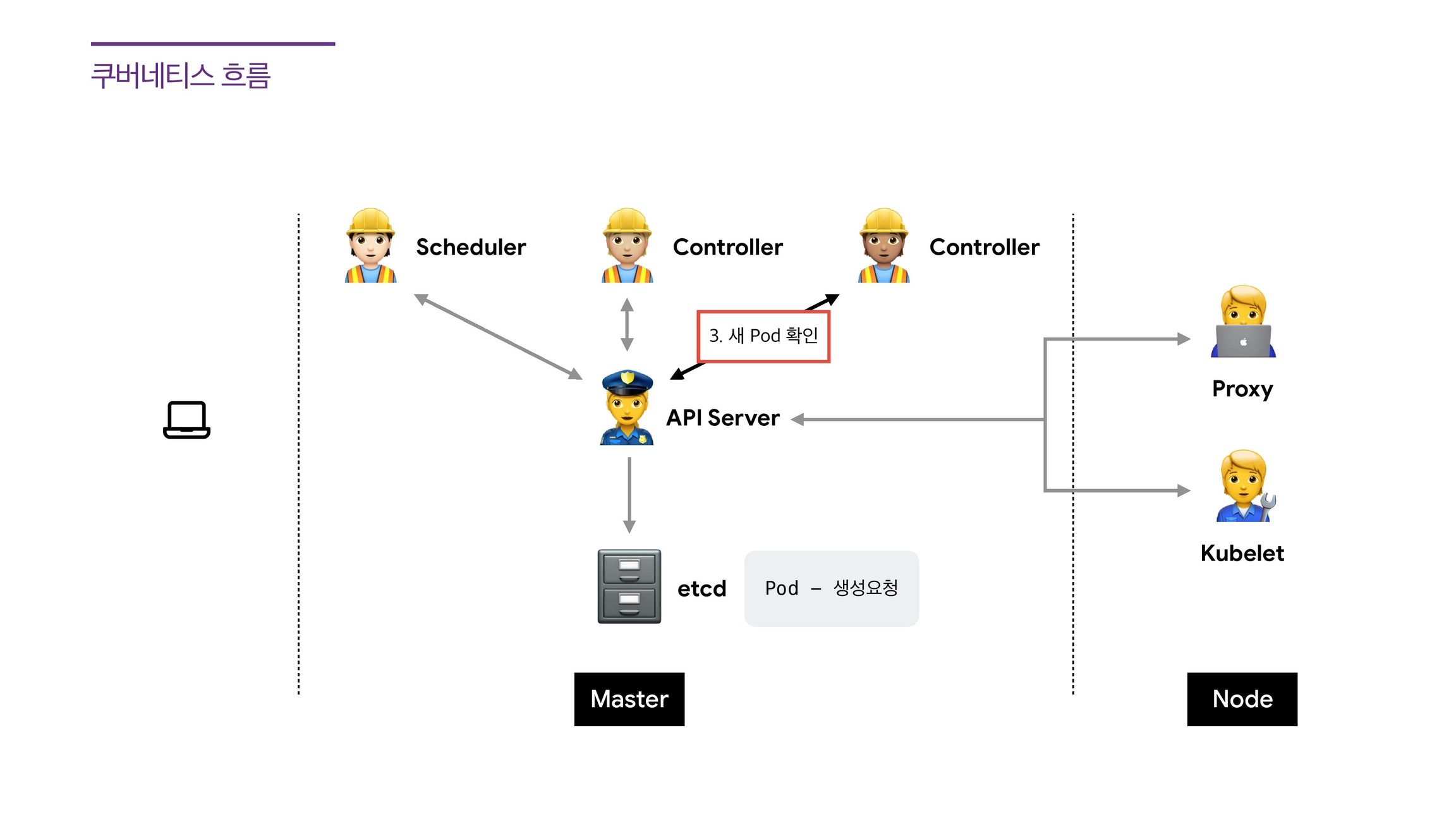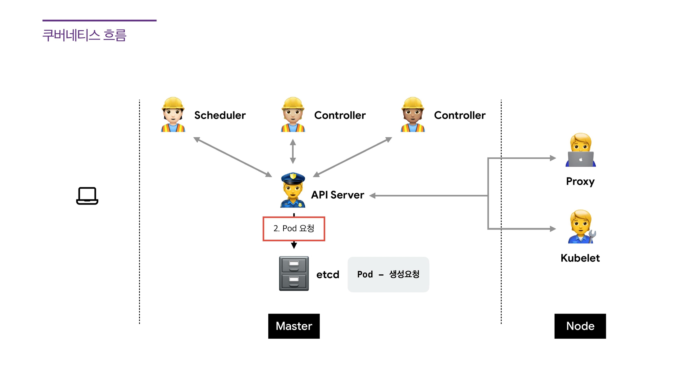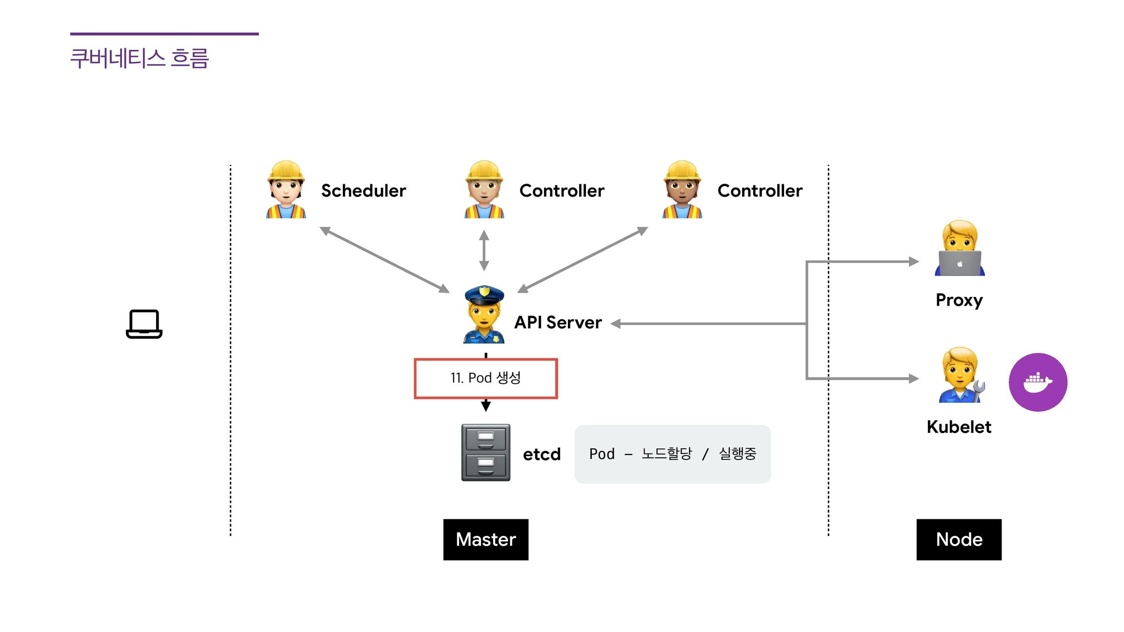 (예시) pod 생성 요청시 쿠버네티스 작동 흐름