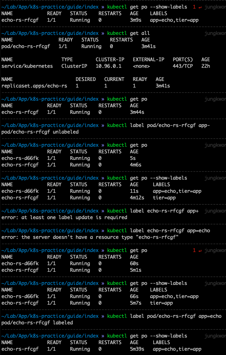 스크립트를 보면 알 수 있듯이 label 을 없애면 desired state 가 아니기 때문에 하나를 만드는데, 신기한건 없앤 것에 label 을 다시 추가해주면 두 개가 되니까 또 desired state 이 아니니까 하나를 없앤다.